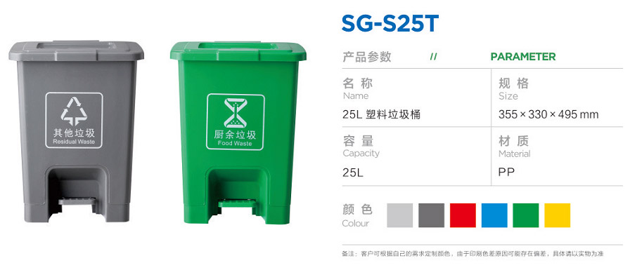菜單産品中心Product center 塑料垃圾桶 垃圾分類房 垃圾分類亭 智能(néng)回收箱 多分類垃圾桶 不鏽鋼果皮箱 鋼木果皮箱 有害垃圾箱 室内垃圾桶 花箱/公園椅 人力保潔車 新能(néng)源環衛車 噴塑加工 钣金加工 熱門産品 →噴塑加工 →外殼钣金加工 →SG-S240G-标準款 您的位置:首頁 → 公司産品 → 塑料垃圾桶 → SG-S25T SG-S25T類别:塑料垃圾桶 簡介:公司專業生産“蘇冠”、“ 智尚彙”品牌的各種塑料垃圾桶、智能(néng)回收箱、智能(néng)清潔小屋、(不鏽鋼、金屬、鋼木、玻璃鋼、石材)垃圾桶、垃圾屋、果殼箱、清潔車、移動廁所、戶外休閑椅、廣告牌等系列産品。産品廣泛應用于生活小區、公共場所、園林綠化、賓館、醫院等場所。采用國際标準的原材料進行生産,産品具有美觀、耐用、防腐、環保等優點,對改善生活環境和工作起(qǐ)到一定的推動作用。 在線咨詢 返回列表 産品說明 相關産品 SG-S12L/10L SG-S12L/10L SG-S15L/14L/8L SG-S15D SG-S20F/16F SG-S25T
