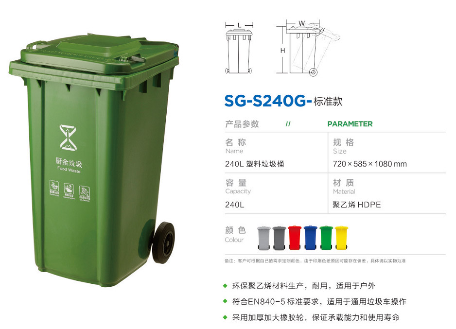 菜單産品中心Product center 塑料垃圾桶 垃圾分類房 垃圾分類亭 智能(néng)回收箱 多分類垃圾桶 不鏽鋼果皮箱 鋼木果皮箱 有害垃圾箱 室内垃圾桶 花箱/公園椅 人力保潔車 新能(néng)源環衛車 噴塑加工 钣金加工 熱門産品 →噴塑加工 →外殼钣金加工 →SG-S240G-标準款 您的位置:首頁 → 公司産品 → 塑料垃圾桶 → SG-S240G-标準款 SG-S240G-标準款類别:塑料垃圾桶 簡介:公司專業生産“蘇冠”、“ 智尚彙”品牌的各種塑料垃圾桶、智能(néng)回收箱、智能(néng)清潔小屋、(不鏽鋼、金屬、鋼木、玻璃鋼、石材)垃圾桶、垃圾屋、果殼箱、清潔車、移動廁所、戶外休閑椅、廣告牌等系列産品。産品廣泛應用于生活小區、公共場所、園林綠化、賓館、醫院等場所。采用國際标準的原材料進行生産,産品具有美觀、耐用、防腐、環保等優點,對改善生活環境和工作起(qǐ)到一定的推動作用。 在線咨詢 返回列表 産品說明 相關産品 SG-S12L/10L SG-S12L/10L SG-S15L/14L/8L SG-S15D SG-S20F/16F SG-S25T