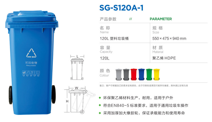 菜單産品中心Product center 塑料垃圾桶 垃圾分類房 垃圾分類亭 智能(néng)回收箱 多分類垃圾桶 不鏽鋼果皮箱 鋼木果皮箱 有害垃圾箱 室内垃圾桶 花箱/公園椅 人力保潔車 新能(néng)源環衛車 噴塑加工 钣金加工 熱門産品 →噴塑加工 →外殼钣金加工 →SG-S240G-标準款 您的位置:首頁 → 公司産品 → 塑料垃圾桶 → SG-S120A-1 SG-S120A-1類别:塑料垃圾桶 簡介:公司專業生産“蘇冠”、“ 智尚彙”品牌的各種塑料垃圾桶、智能(néng)回收箱、智能(néng)清潔小屋、(不鏽鋼、金屬、鋼木、玻璃鋼、石材)垃圾桶、垃圾屋、果殼箱、清潔車、移動廁所、戶外休閑椅、廣告牌等系列産品。産品廣泛應用于生活小區、公共場所、園林綠化、賓館、醫院等場所。采用國際标準的原材料進行生産,産品具有美觀、耐用、防腐、環保等優點,對改善生活環境和工作起(qǐ)到一定的推動作用。 在線咨詢 返回列表 産品說明 相關産品 SG-S12L/10L SG-S12L/10L SG-S15L/14L/8L SG-S15D SG-S20F/16F SG-S25T