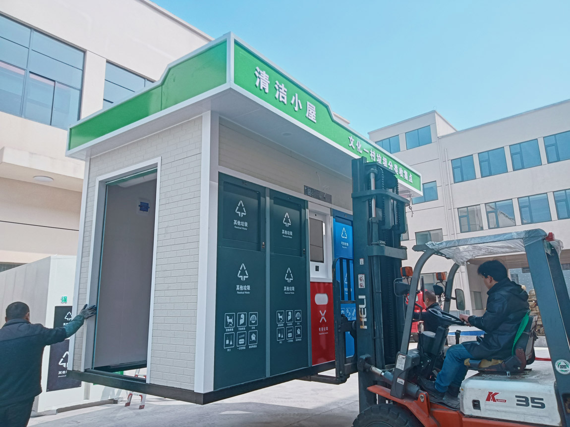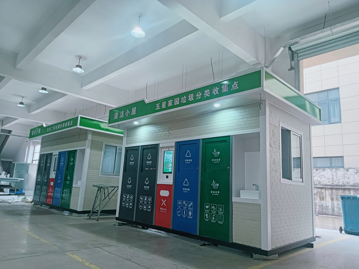 金壇4+1帶洗手池平頂垃圾分類房順利完工,完成(chéng)交付,爲金壇綠化共建生态文明,暢享綠色生活!